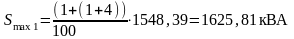 Далее определяем максимальную полную мощность, учитывая рост нагрузок: