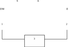 Источнику S (или поглотителю А), закрепленному на доплеровском модуляторе DM, сообщается периодическая линейно–изменяющаяся скорость. Блок управления модулятором 1 обеспечивает отработку заданного закона движения и формирует сигналы запуска системы накопления 3 в режиме многоканального пересчета. Движение источника S создает сдвиг энергии резонансного излучения, что вызывает изменение интенсивности гамма–излучения пропущенного или рассеянного поглотителем A и регистрируемого детектором D. Сигналы с детектора D усиливаются, селектируются по амплитуде в спектрометрическом тракте 2 и отправляются в выбранную ячейку памяти системы накопления 3. Накопление происходит в режиме последовательного многоканального пересчёта. Однозначное соответствие скорости движения номеру канала накопления обеспечивается синхронизацией рабочего периода движения с циклом переключения ячеек памяти, отведенных на накопление.