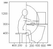 Для роботи з персональним комп'ютером висота робочої поверхні для людей з ростом 1800 мм. повинна становити 800 мм. Дані для Ш - групи робіт (монтаж більших деталей, конторська робота, верстатні роботи, що не вимагають високої точності) по наведені в табл. 6.3.