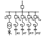 Расчеты параметров схемы включения конденсаторной батареи с вентильным преобразователем с целью компенсации реактивной мощности показывают, что при этом общее действующее значение тока конденсаторной батареи во много раз превысит допустимое, что приведет к ее повреждению. Общий коэффициент несинусоидальности напряжения также резко увеличивается в точке присоединения конденсаторной батареи.