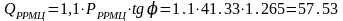 Расчетная активная и реактивная мощность по РМЦ в целом:
