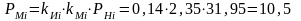 Для расчета мощности по РМЦ в целом найдем средневзвешенные коэффициенты