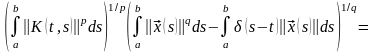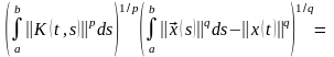 где - ограниченное замкнутое множество из евклидова пространства Rm, K(t,s) – измеримая по s почти при всех значениях t функция, для которой при некоторых p>1 и выполняется условие:
