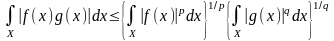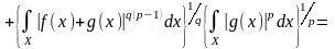 Найдем положительное число q из условия 1/p+1/q=1 и применим неравенство Гельдера к каждому из интегралов, стоящих в правой части последней формулы. Тогда
