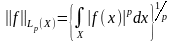 Пусть , Лебеговским функциональным пространством называется совокупность всех вещественнозначных (соответственно - комплекснозначных) измеримых по Лебегу функций (соответственно - ) [14], таких, что интегрируема на X, т.е.