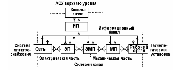 Силовой канал в свою очередь состоит из двух частей – электрической и механической и обязательно содержит связующее звено – электромеханический преобразователь.