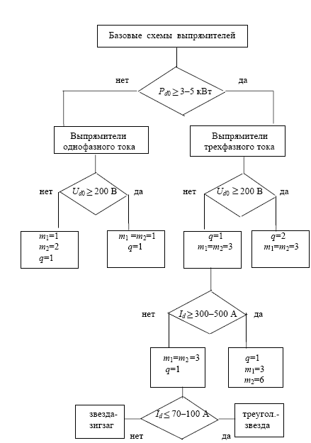 Рисунок 3.1 – Алгоритм выбора схемы выпрямителя