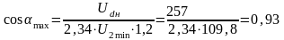 Поскольку амплитуда первой гармоники пульсаций выходного напряжения выпрямителя зависит от угла регулирования, необходимо определить максимальное значение этого угла: