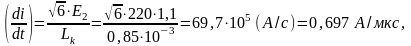 Для расчета защитной цепочки необходимо знать амплитуду обратного тока защищаемого вентиля и индуктивность контура коммутации, которая в основном определяется реактивной составляющей сопротивления КЗ анодного трансформатора: