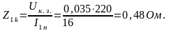 Модуль полного сопротивления короткого замыкания трансформатора: