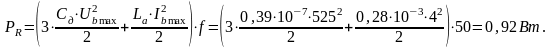 Мощность, рассеиваемая в резисторе защитной цепи, определяется энергией, запасенной в элементах колебательного контура при включении и выключении вентиля. Эта мощность вычисляется по формуле: