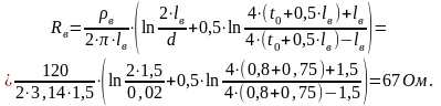 Рассчитываем удельное сопротивление грунта для вертикального электрода: