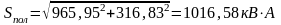 (2.21)полная расчетная мощность, отнесенная к сборным шинам 6–10 кВ РУ ТП с учетом компенсации реактивной мощности.