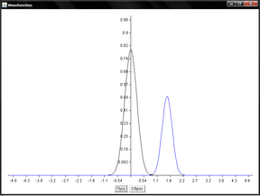 for (int j=0; j double S = 0; for (int s=0; s S += rePsyX0[s]*Math.cos(p[j]*x[s]) + imPsyX0[s]*Math.sin(p[j]*x[s]); } RePsyP0[j] = hx*S/Math.sqrt(2*Math.PI);} //rePsyX0 = rePsyX2t; //imPsyX0 = imPsyX2t; return RePsyP0; } double[] rePsyP0 = new double[N+1];{ rePsyP0 = rePsyP0();} /** * * Первое преобразование Фурье и вычисление мнимой части функции Psy */ double[] imPsyP0(){ double ImPsyP0[]= new double[N+1]; for (int j=0; j double S = 0; for (int s=0; s S += imPsyX0[s]*Math.cos(p[j]*x[s]) - rePsyX0[s]*Math.sin(p[j]*x[s]); } ImPsyP0[j] = hx*S/Math.sqrt(2*Math.PI);} //rePsyX0 = rePsyX2t; //imPsyX0 = imPsyX2t; return ImPsyP0; } double[] imPsyP0 = new double[N+1];{ imPsyP0 = imPsyP0();} /** * * Произведение действительной части функции Psy и первой составляющей оператора расщепления */ double[] rePsyPt2(){ double RePsyPt2[]= new double[N+1]; for (int j=0; j RePsyPt2[j] = rePsyP0[j]*Math.cos(p[j]*p[j]*DT/2) + imPsyP0[j]*Math.sin(p[j]*p[j]*DT/2); }return RePsyPt2; } double[] rePsyPt2 = new double[N+1];{ rePsyPt2 = rePsyPt2();} /** * * Произведение мнимой части функции Psy и первой составляющей оператора расщепления */ double[] imPsyPt2(){ double ImPsyPt2[]= new double[N+1]; for (int j=0; j ImPsyPt2[j] = imPsyP0[j]*Math.cos(p[j]*p[j]*DT/2) - rePsyP0[j]*Math.sin(p[j]*p[j]*DT/2)*0; }return ImPsyPt2; } double[] imPsyPt2 = new double[N+1];{ imPsyPt2 = imPsyPt2();} /** * * Второе преобразование Фурье и вычисление действительной части функции Psy */ double[] rePsyX1t2(){ double RePsyX1t2[]= new double[N+1]; for (int j=0; j double S = 0; for (int s=0; s S += rePsyPt2[s]*Math.cos(p[s]*x[j]) - imPsyPt2[s]*Math.sin(p[s]*x[j]); } RePsyX1t2[j] = hp*S/Math.sqrt(2*Math.PI); }return RePsyX1t2; } double[] rePsyX1t2 = new double[N+1];{ rePsyX1t2 = rePsyX1t2();} /** * * Второе преобразование Фурье и вычисление мнимой части функции Psy */ double[] imPsyX1t2(){ double ImPsyX1t2[]= new double[N+1]; for (int j=0; j double S = 0; for (int s=0; s S += imPsyPt2[s]*Math.cos(p[s]*x[j]) + rePsyPt2[s]*Math.sin(p[s]*x[j]); } ImPsyX1t2[j] = hp*S/Math.sqrt(2*Math.PI); }return ImPsyX1t2; } double[] imPsyX1t2 = new double[N+1];{ imPsyX1t2 = imPsyX1t2();} /** * * Произведение действительной части функции Psy и второй составляющей оператора расщепления */ double[] rePsyX1t2V(){ double RePsyX1t2V[]= new double[N+1]; for (int j=0; j RePsyX1t2V[j] = rePsyX1t2[j]*Math.cos(w[j]*DT) + imPsyX1t2[j]*Math.sin(w[j]*DT); }return RePsyX1t2V; } double[] rePsyX1t2V = new double[N+1];{ rePsyX1t2V = rePsyX1t2V();} /** * * Произведение мнимой части функции Psy и второй составляющей оператора расщепления */ double[] imPsyX1t2V(){ double ImPsyX1t2V[]= new double[N+1]; for (int j=0; j ImPsyX1t2V[j] = imPsyX1t2[j]*Math.cos(w[j]*DT) - rePsyX1t2[j]*Math.sin(w[j]*DT); }return ImPsyX1t2V; } double[] imPsyX1t2V = new double[N+1];{ imPsyX1t2V = imPsyX1t2V();} /** * * Третье преобразование Фурье и вычисление действительной части функции Psy */ double[] rePsyP1t(){ double RePsyP1t[]= new double[N+1]; for (int j=0; j double S = 0; for (int s=0; s S += rePsyX1t2V[s]*Math.cos(p[j]*x[s]) + imPsyX1t2V[s]*Math.sin(p[j]*x[s]); } RePsyP1t[j] = hx*S/Math.sqrt(2*Math.PI); }return RePsyP1t; } double[] rePsyP1t = new double[N+1];{ rePsyP1t = rePsyP1t();} /** * * Третье преобразование Фурье и вычисление мнимой части функции Psy */ double[] imPsyP1t(){ double ImPsyP1t[]= new double[N+1]; for (int j=0; j double S = 0; for (int s=0; s S += imPsyX1t2V[s]*Math.cos(p[j]*x[s]) - rePsyX1t2V[s]*Math.sin(p[j]*x[s]); } ImPsyP1t[j] = hx*S/Math.sqrt(2*Math.PI); }return ImPsyP1t; } double[] imPsyP1t = new double[N+1];{ imPsyP1t = imPsyP1t();} /** * * Произведение действительной части функции Psy и третьей составляющей оператора расщепления */ double[] rePsyP1te(){ double RePsyP1te[]= new double[N+1]; for (int j=0; j RePsyP1te[j] = rePsyP1t[j]*Math.cos(p[j]*p[j]*DT/2) + imPsyP1t[j]*Math.sin(p[j]*p[j]*DT/2); }return RePsyP1te; } double[] rePsyP1te = new double[N+1];{ rePsyP1te = rePsyP1te();} /** * * Произведение мнимой части функции Psy и третьей составляющей оператора расщепления */ double[] imPsyP1te(){ double ImPsyP1te[]= new double[N+1]; for (int j=0; j ImPsyP1te[j] = imPsyP1t[j]*Math.cos(p[j]*p[j]*DT/2) - rePsyP1t[j]*Math.sin(p[j]*p[j]*DT/2); }return ImPsyP1te; } double[] imPsyP1te = new double[N+1];{ imPsyP1te = imPsyP1te();} /** * * Четвертое преобразование Фурье и вычисление действительной части функции Psy */ double[] rePsyX2t(){ double RePsyX2t[]= new double[N+1]; for (int j=0; j double S = 0; for (int s=0; s S += rePsyP1te[s]*Math.cos(p[s]*x[j]) - imPsyP1te[s]*Math.sin(p[s]*x[j]); } RePsyX2t[j] = hp*S/Math.sqrt(2*Math.PI); }return RePsyX2t; } double[] rePsyX2t = new double[N+1];{ rePsyX2t = rePsyX2t();} /** * * Четвертое преобразование Фурье и вычисление мнимой части функции Psy */ double[] imPsyX2t(){ double ImPsyX2t[]= new double[N+1]; for (int j=0; j double S = 0; for (int s=0; s S += imPsyP1te[s]*Math.cos(p[s]*x[j]) + rePsyP1te[s]*Math.sin(p[s]*x[j]); } ImPsyX2t[j] = hp*S/Math.sqrt(2*Math.PI); }return ImPsyX2t; } double[] imPsyX2t = new double[N+1];{ imPsyX2t = imPsyX2t();} /** * * Вычисление вероятности в момен
