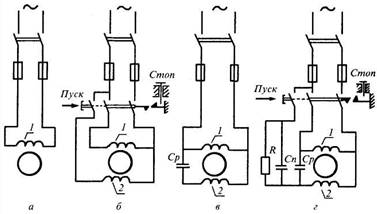Рис. 4. Схеми вмикання однофазного асинхронного електродвигуна