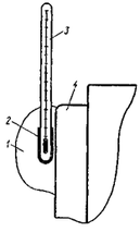 Рис. 6. Установка термометра для вимірювання температури частин електродвигуна: 1 – вата; 2 – фольга; 3 – термометр; 4 – нагріта поверхня