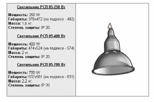 Для освещения цеха принимаем лампы ДРЛ-400, соответственно для них выбираем светильники «РСП 05-400» и ПРА «1К 400ДРЛ 44-001УХЛ1»