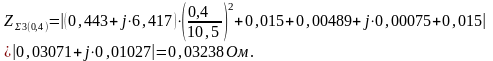 где Zk∑ – суммарное сопротивление до точки к.з., Ом;