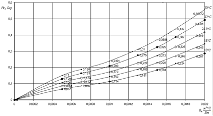 По цій залежності визначається тиск у чистому конденсаторі при даній витраті пари, витраті води й середньо інтегральної температурі охолодженої води.