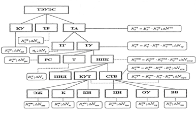 Найбільш істотний зв'язок НПК із енергоблоком здійснюється через кінцеві параметри пари (Рк, tк) і витрата електроенергії на привод насосів комплексу, тобто НПК впливає на економічність ТЕС, впливаючи на їх КПД[8]: