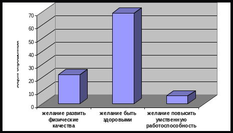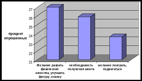 Студенты отмечают, что, идя на занятие по физической культуре, они не задумываются о значении двигательной активности для их здоровья, о возможности применения полученных знаний, двигательных умений и навыков в самостоятельных занятиях вне ВУЗа.