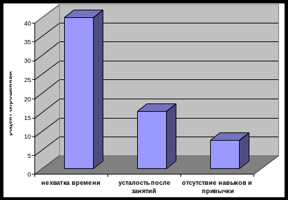 Среди причин, препятствующих заниматься физической культурой, (по данным Хроминой) студентами были названы [50]: