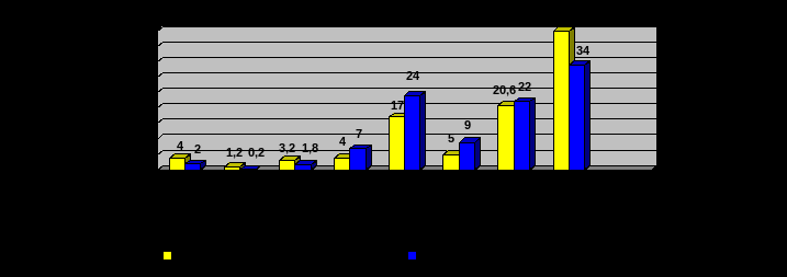 Рис.1 Характер повреждений и заболеваний опорно-двигательного аппарата легкоатлетов-бегунов на средние и длинные дистанции (в %)