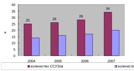 Рис.5 - Количество ССУЗов и ВУЗов, принимавших участие в Спартакиадах