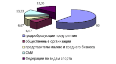 Кроме того, отмечается, что наряду с муниципальными органами управления физической культурой и спортом, реальную заботу об улучшении оздоровительной работы, развития массового спорта в Нижнекамском муниципальном районе проявляют градообразующие предприятия (рисунок 17). Данное обстоятельство свидетельствует о том, что со стороны государства уделяется незначительное внимание развитию сферы физической культуры и спорта, что может оцениваться отрицательно.