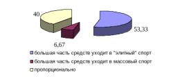 Кроме того, респондентами отмечается, что большая часть денежных средств расходуется на финансирование "элитных" видов спорта, таких, как хоккей и футбол, оставляя на развитие массовых видов спорта лишь незначительную часть (рисунок 20).