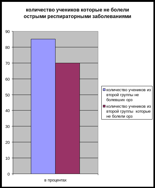 Количество учеников не болевшие острыми респираторными заболеваниями во время педагогического исследования в процентах.