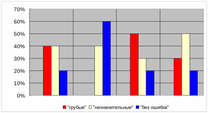 У 30% спортсменов по-прежнему остались «грубые» ошибки, а процент безошибочного выполнения тот же (20%).