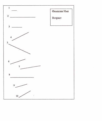 Образец карты, с помощью которой производилось тестирование технического элемента «Развитие наблюдательности и памяти» в контрольной и экспериментальной группах для спортсменов ориентировщиков на этапе начальной спортивной специализации. Упражнение «Перенос 10 КП на время»