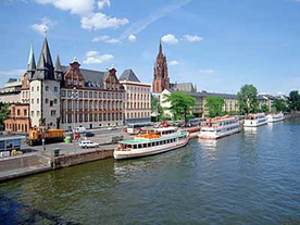 Исторический центр города - Ремерберг (Roemerberg) с его прекрасными домами в стиле фахверк, был с большой тщательностью и любовью восстановлен по старинным планам в 1986 году. Здесь в угловом доме, который называется "Большой ангел" (Grosser Engel), был основан в 17 веке первый франкфуртский банк.