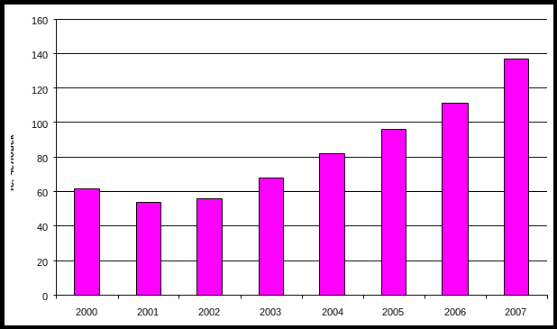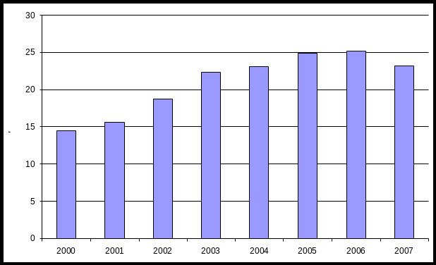 Рис. 2 Доля отказов в получении неэмиграционных виз в США.