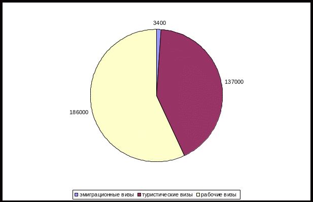 Рис. 3 Структура видов выданных посольством США в России виз в 2007 году