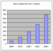 «Таким образом, число прибытий с 1966 по 2006 увеличилось почти в 10 раз (Рисунок 1.1.1.). Среднегодовые темпы роста числа прибытий иностранных туристов, составившие с 1996 года по 2006 год 4,3%, отражают жизнестойкость и устойчивость международного туризма перед экономическими колебаниями.