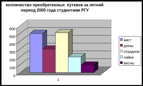Количество приобретенных путевок студентами РГУ за лето 2005 года
