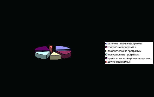 Анализ анкет показал, что почти все ответившие на вопросы предпочитают проводить свой досуг совместно с друзьями (90%).(Таб.4) При выборе турпродукта 70% обращают внимание на предлагаемые анимационные мероприятия. Предпочтения молодых людей выглядят следующим образом:90% выбирают развлекательные анимационные мероприятия, 60% - спортивные, 45% - познавательные, 60% - экскурсионные, 60% - приключенческо-игровые (Таб. 4). 90% опрошенных хотели бы участвовать в предлагаемых анимационных программах.60% в спортивных, 90% в развлекательных, 60% в познавательных, 85% в экскурсионных, 75% в приключенческо-игровых, 45% хотели бы совершить туристические пешие походы.