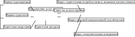 Агентами на туристском рынке могут являться турагенты, туроператоры и туристические корпорации, совокупность которых и связи между ними составляют структуру туристского рынка. Схема функционирования туристического рынка может быть представлена в следующем виде (рис. 3):