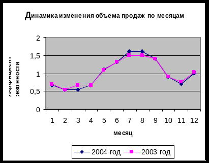 Рисунок 9 – Графическое изображение коэффициентов сезонности в 2003 и 2004 гг.
