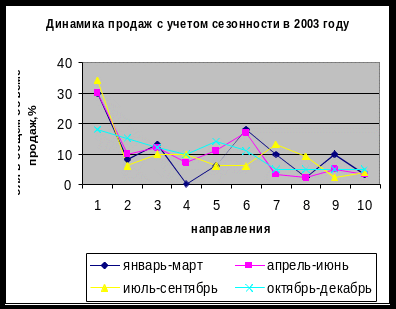 Таблица 9 Анализ объема реализации услуг с учетом сезонности за 2003 -2004 гг.