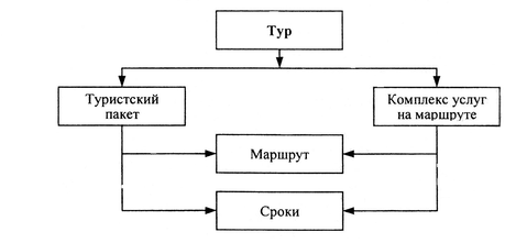 Тур - первичная единица туристского продукта, реализуемая клиенту как единое целое, продукт труда туроператора на определенный маршрут и в конкретные сроки 21. Структура тура представлена на рисунке 3.