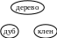 - дерево, дуб, клен понятия совместимые, подчиненные и подчиняющие, т.к. дерево – общее понятие, включающее в себя более частные понятие дуб и клен