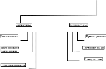 Совместимые – такие два понятия, в содержании которых нет признаков, исключающих возможность полного или частичного совпадения объемов;