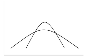 Из графика видно, что распределение вероятностей проектов «А» и «Б» имеют одинаковую величину расчетного дохода, однако в проекте «А» кривая уже, что свидетельствует о меньшей колеблемости вариантов расчетного дохода относительно средней его величины R, а следовательно и о меньшем уровне риска этого проекта.