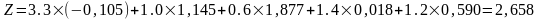 Z = 1.2KОБ + 1.4KНП + 3.3KПДН + 0.6KСК + 1.0KОА, (13),