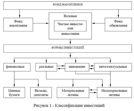 На рис. 1.2 приведена схема классификации инвестиций по формам. Фонд накопления как сберегаемая часть национального дохода является основным источником инвестиций. Условно он может быть подразделен на фонд возмещения и фонд обновления. За счет этих фондов осуществляются соответственно валовые и чистые (в их составе) инвестиции.