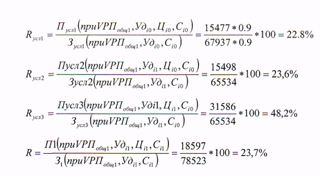 Аналогично Rусл1=45,1%;R усл2=70,8%; Rусл3=44,0%;Rусл4 =45,8%;