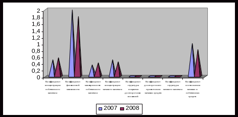 К 2008 г. значение коэффициента снизилось на 6% и стало ниже нормативного значения.